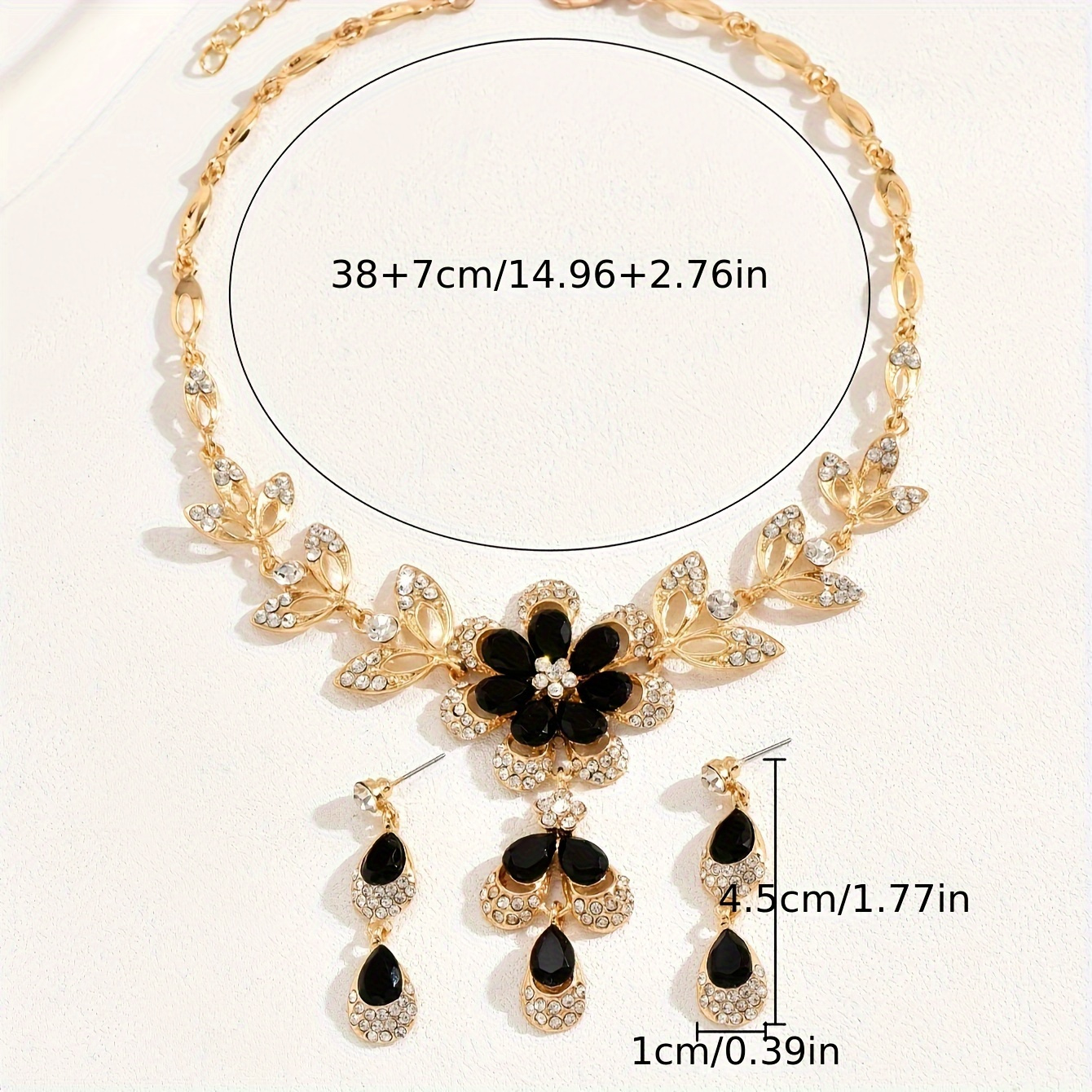 Make a statement with this stunning necklace and earrings set, featuring exquisite black cubic zirconia and a delicate floral design. Perfectly blending sophistication and charm, this set adds a touch of elegance to any outfit—ideal for formal occasions, evening wear, or stylish gifting.
