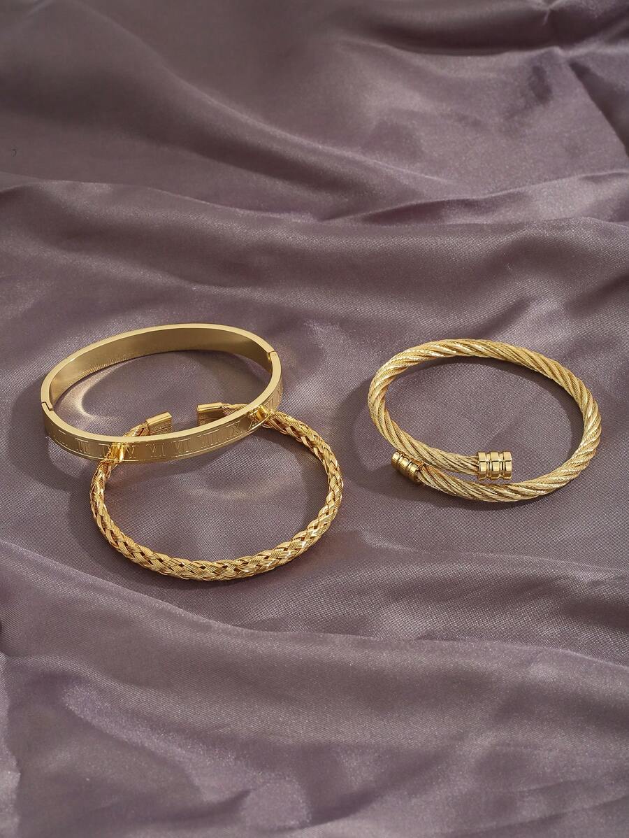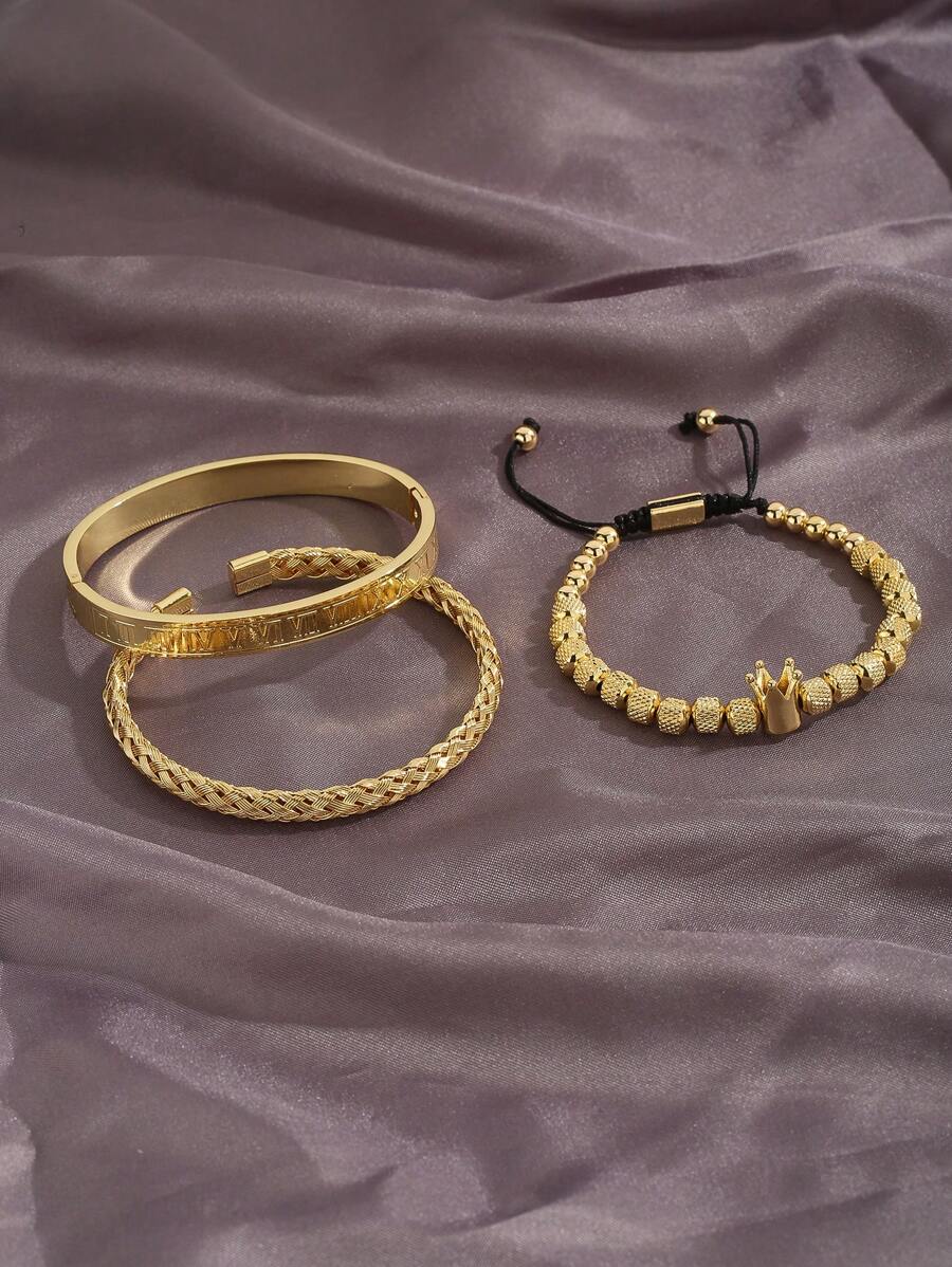 3pcs/Set Men's Luxury Versatile Roman Numeral Stainless Steel Braided Adjustable Bracelet