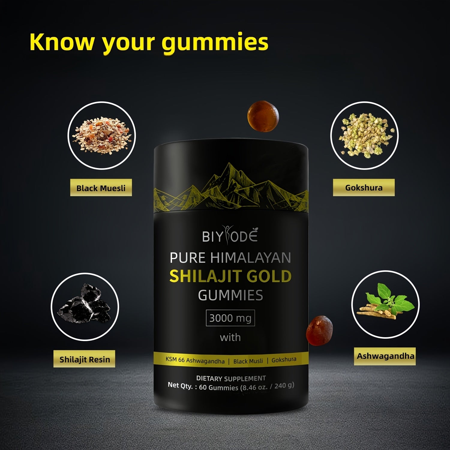 Unlock the ancient power of the Himalayas with our Pure Shilajit Gummies, formulated with 85+ trace minerals and enhanced with KSM-66® Ashwagandha – a highly bioavailable, clinically studied adaptogen. Sourced from pristine Himalayan altitudes, each gummy delivers a potent dose of purified Shilajit resin, helping support energy, stamina, focus, and overall vitality.