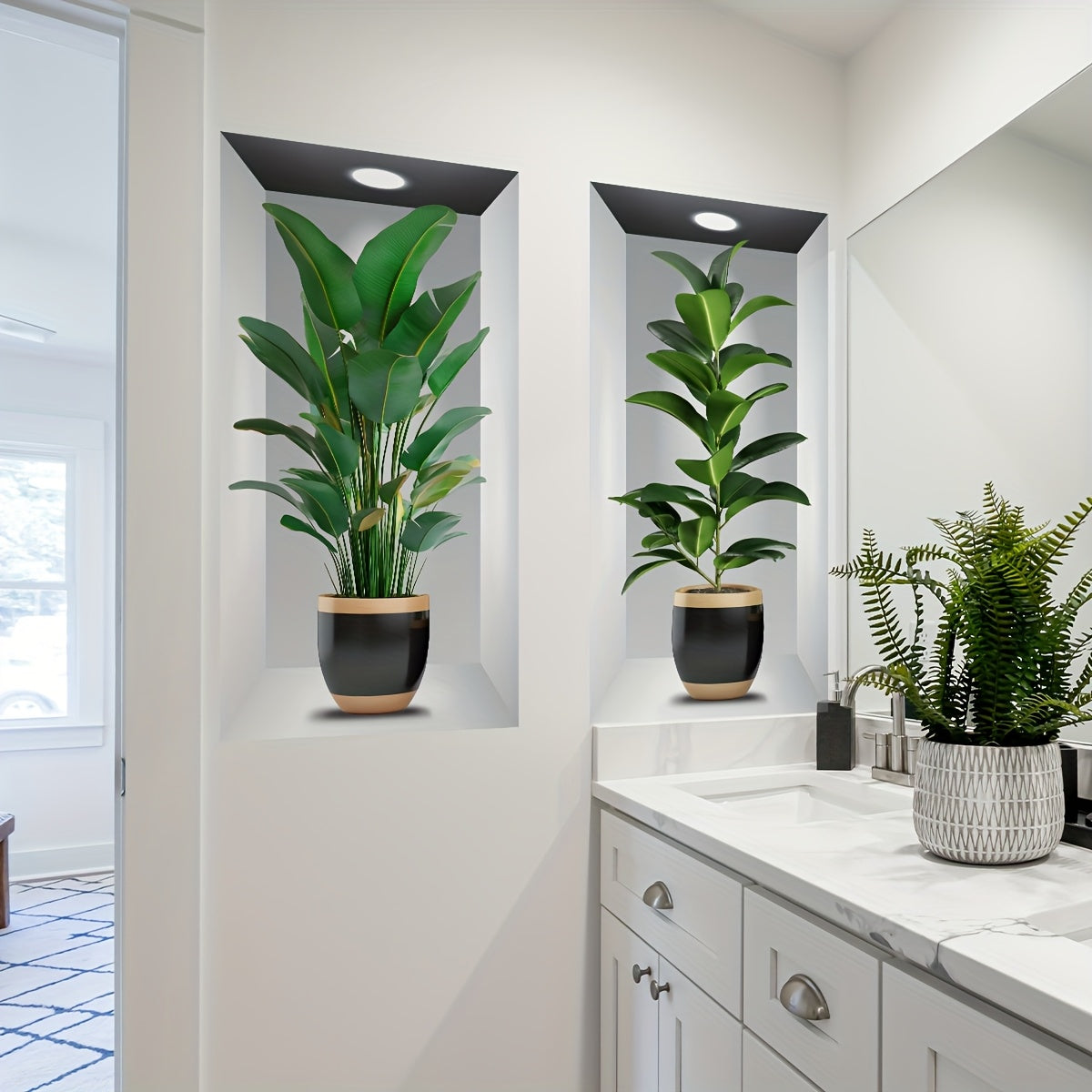 Transform your bedroom or living room with this stylish set of two potted plant-themed wall stickers. Designed as creative two-piece paintings, these self-adhesive decals add a fresh and artistic touch to any background wall. Easy to apply and remove, they are perfect for home decoration, bringing a modern and cozy vibe without any hassle. Ideal for those looking to enhance their space with minimal effort and maximum style.