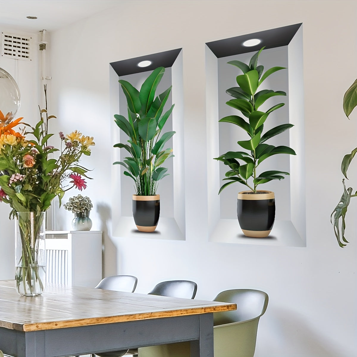 Set of Two Potted Creative Two-Piece Painting Wall Stickers