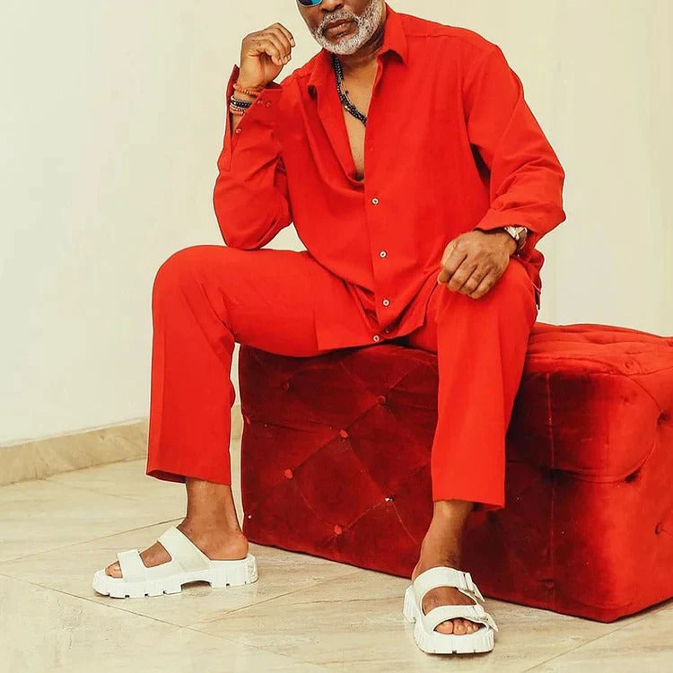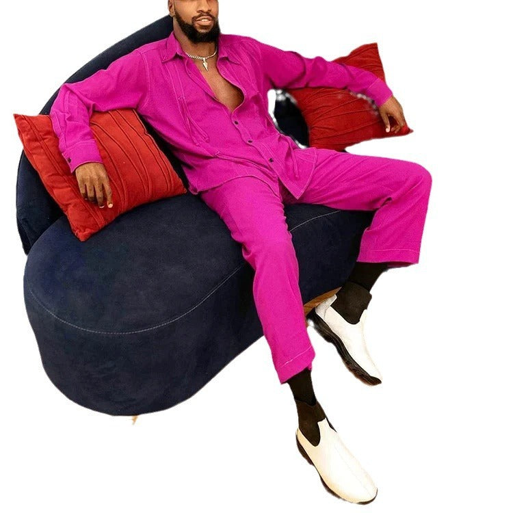 Autumn And Winter Men's Long-sleeve Shirt Lengthened Blouse And Pants