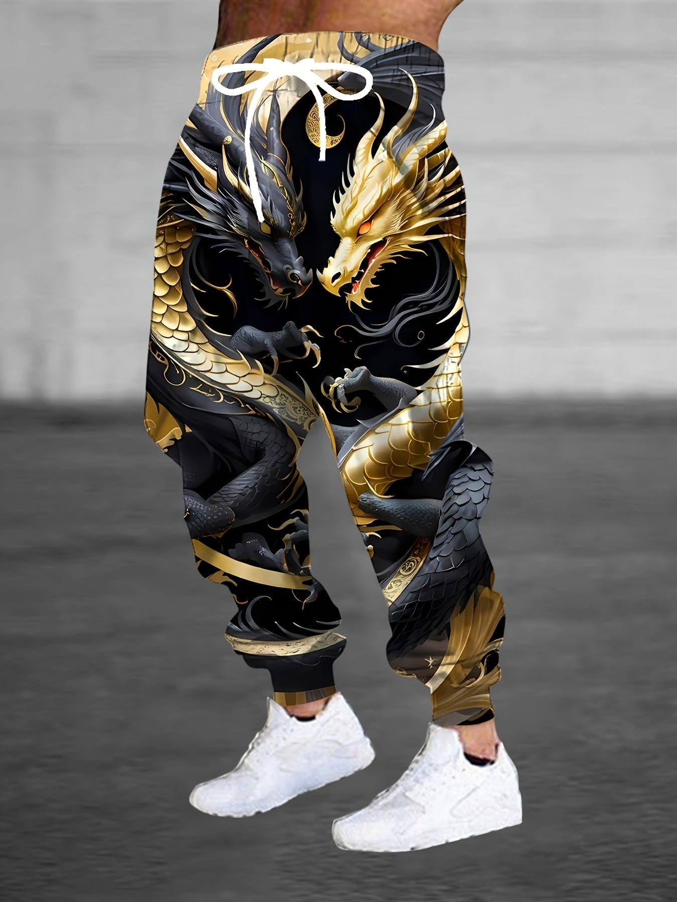 Elevate your streetwear game with these Men's 3D Dragon Print Joggers, crafted from soft, stretchy polyester for all-day comfort and movement. Featuring a striking Chinese dragon design, these sweatpants blend cultural edge with modern fashion.