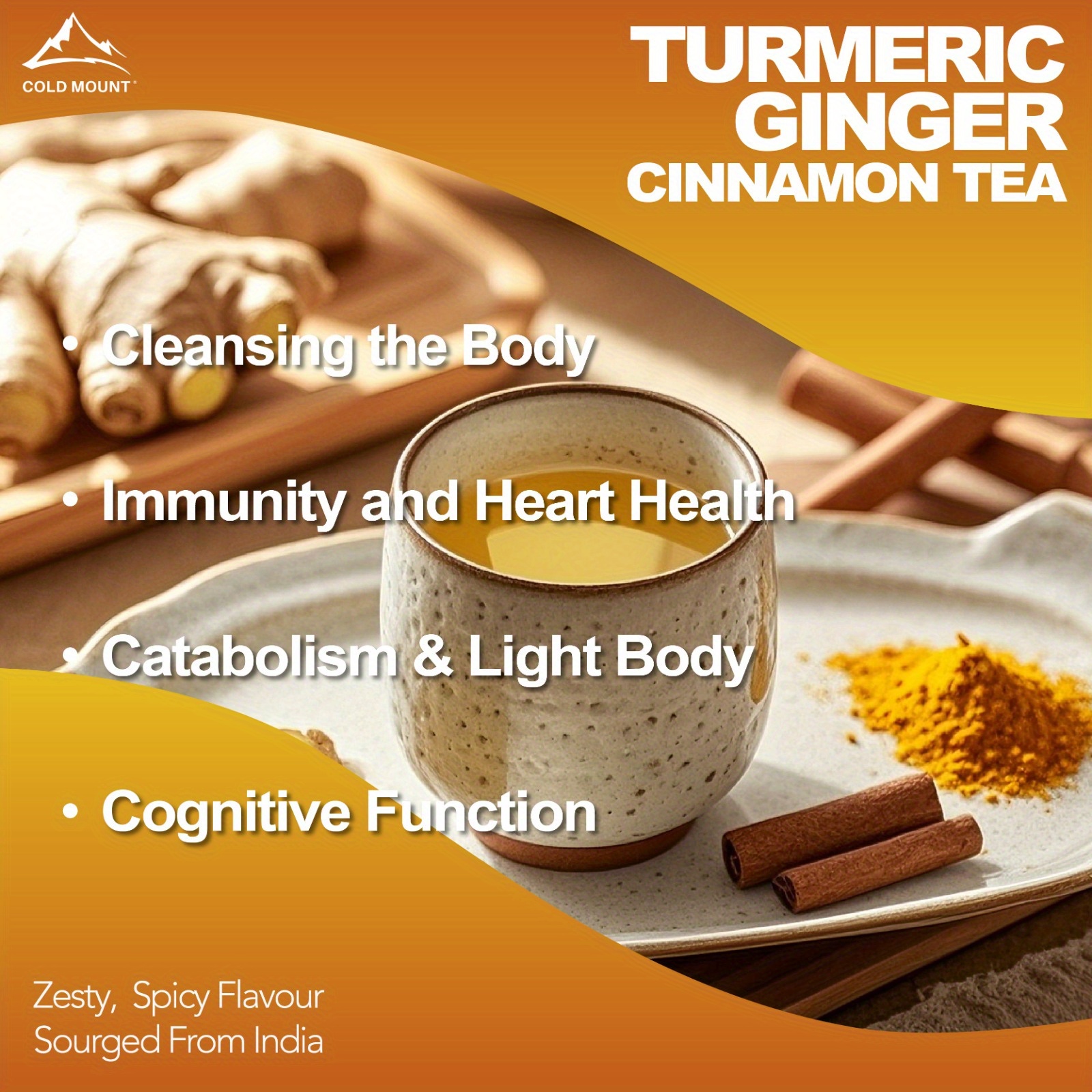 Indulge in the warm, comforting blend of natural turmeric, ginger, and cinnamon—crafted to calm the mind, support overall wellness, and energize your daily routine. This caffeine-free herbal tea is designed to: