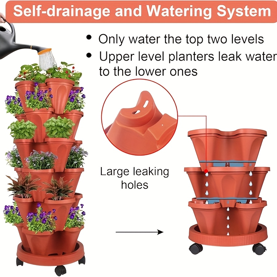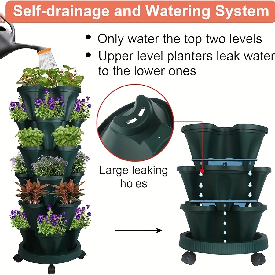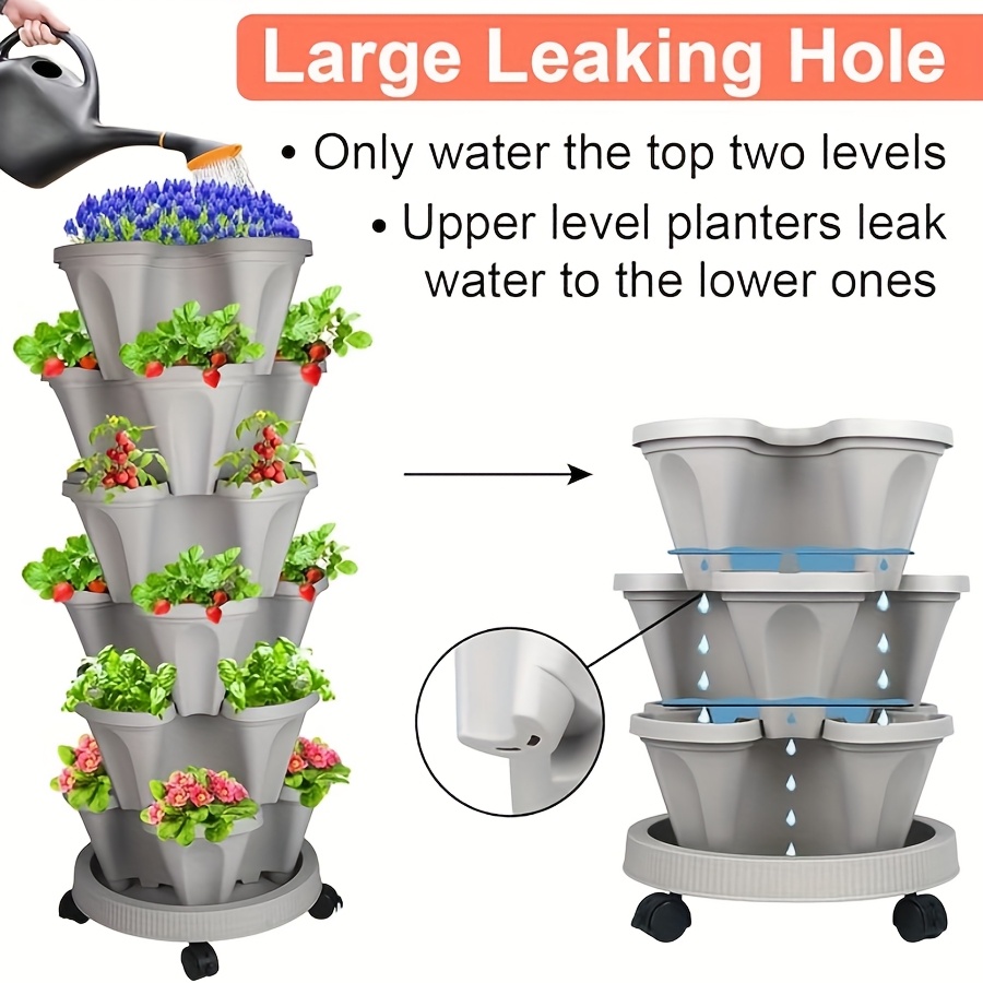 Hot Deal 5-Layer Stackable Vertical Garden Planter – 1 Set (16 Pcs) with Wheels & Tools