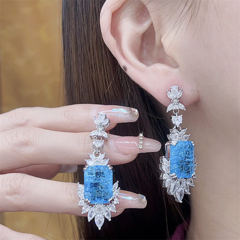 Ice Navy Blue Ornament Three-piece Ring Set Necklace