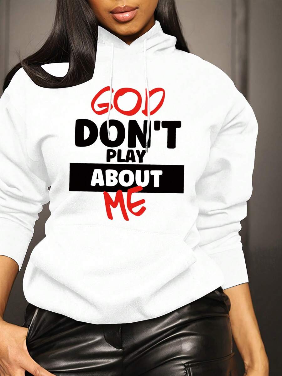 INAWLY Women's Letter Printed Casual Hoodie With Pocket
