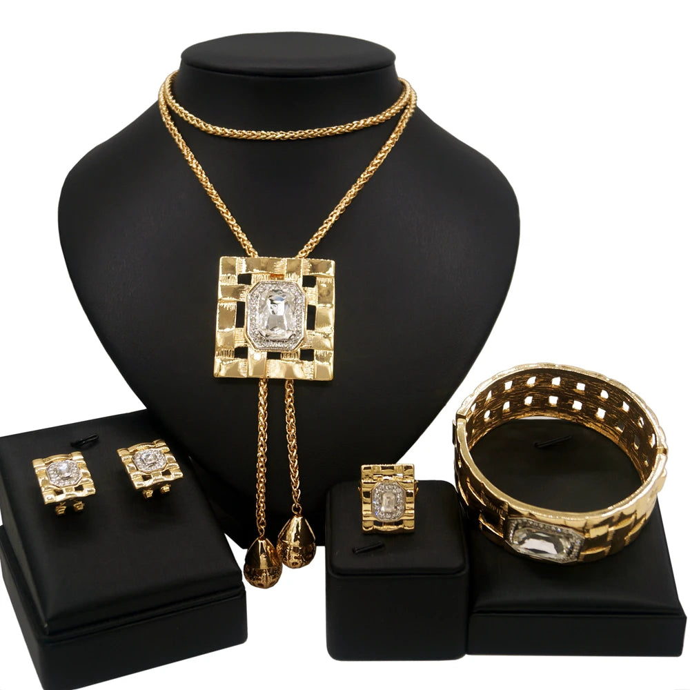 Jewelry Sets For Women Artificial Gemstone African Fashion Bijoux Long Necklace Luxury Dubai Jewelry 18K Gold Plated Bracelet