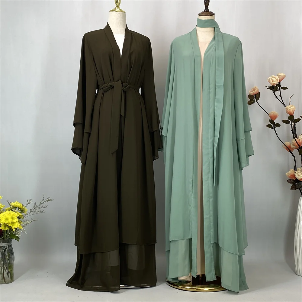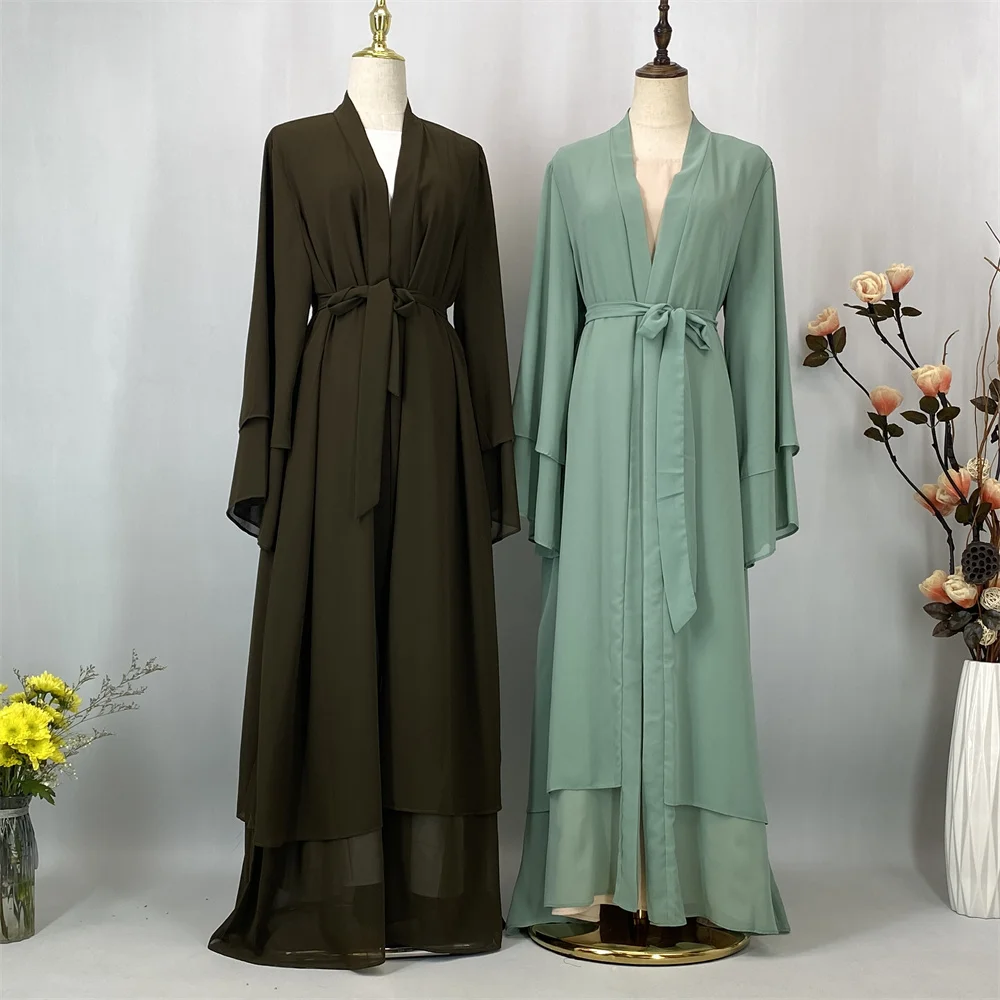 Latest Muslim Abaya – Two-Layer Chiffon Elegant Cardigan Robe for Women