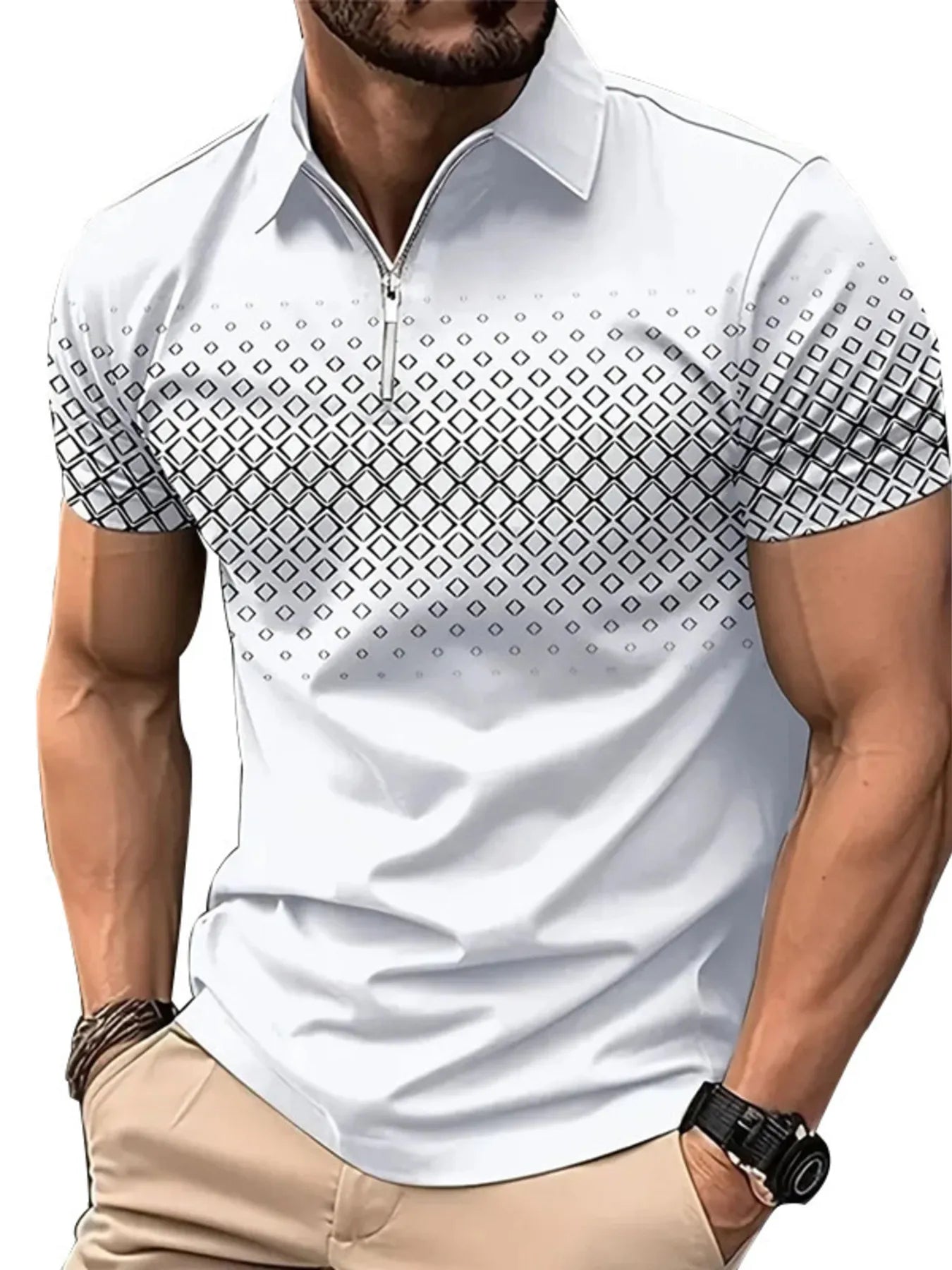 Men's Full Size Diamond Print Short Sleeve Polo Plus Size