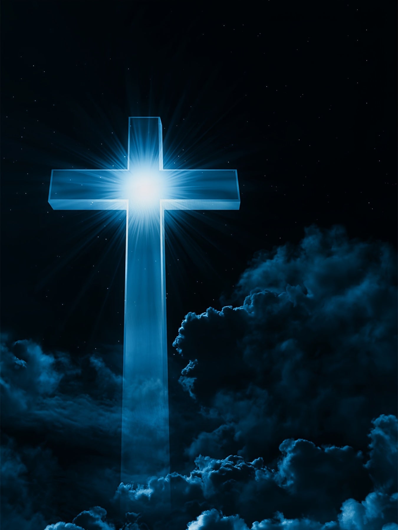 Men's Oversized Blue Shirt – Retro 3D Print with Cross Design