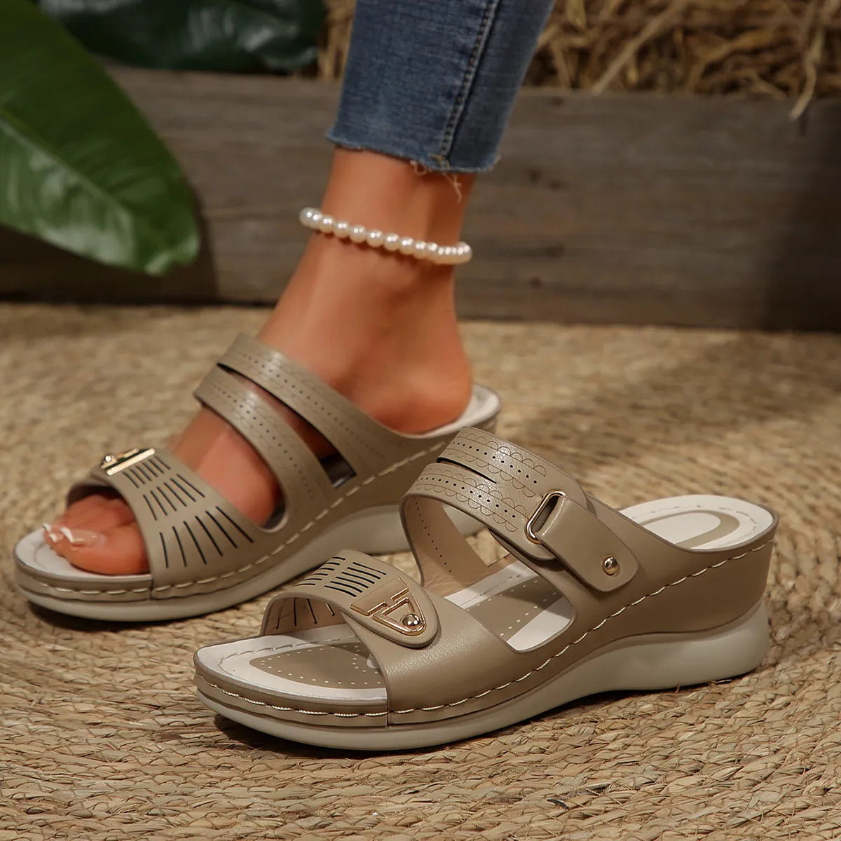 Step into comfort and style with these Open Toe Wedge Sandals. Featuring a breathable open toe design and a supportive wedge heel, they offer the perfect blend of casual elegance and all-day wearability. Whether you're strolling through the city or enjoying a summer outing, these sandals provide effortless charm and a flattering lift. Ideal for pairing with sundresses, shorts, or jeans, they’re a must-have for warm-weather wardrobes.