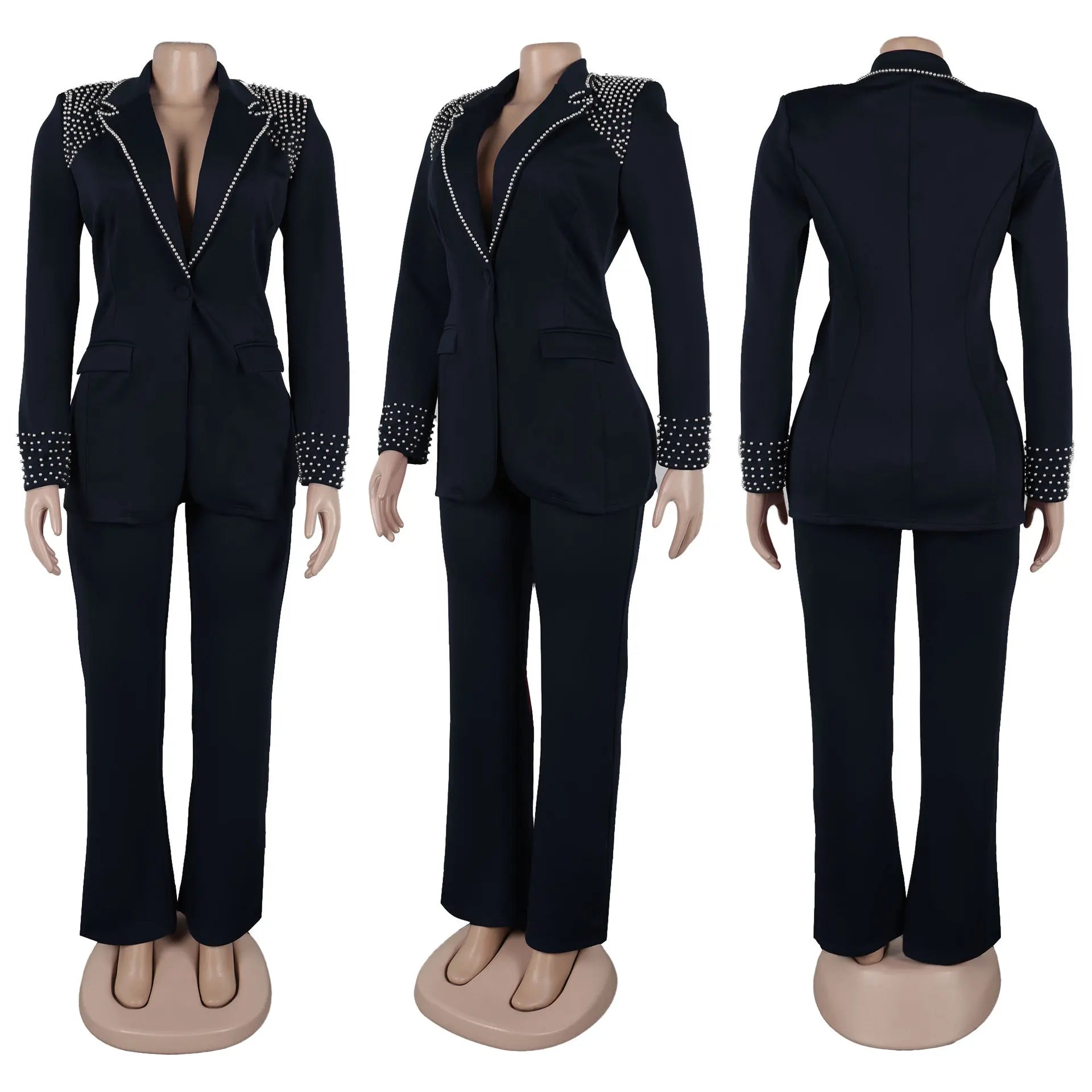 Step into confidence with this chic two-piece pant set for women. Designed with a turn-down collar blazer and matching tailored trousers, this set blends classic structure with modern Y2K-inspired flair. Perfect for both professional and casual wear, it offers a flattering silhouette that transitions effortlessly from day to night.