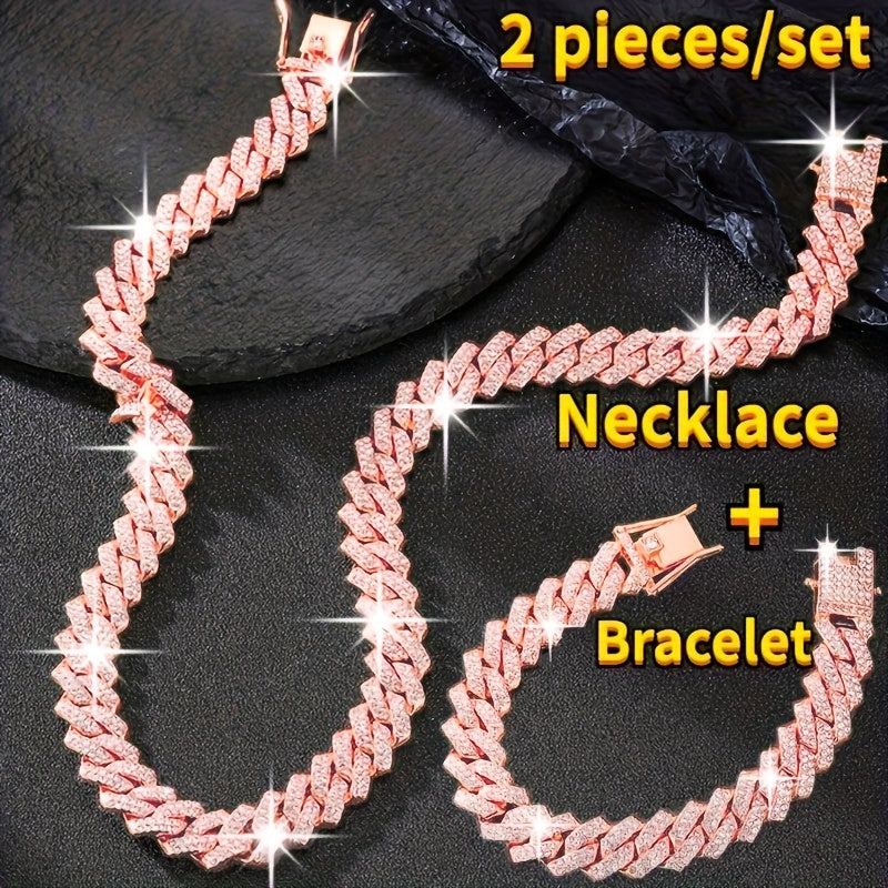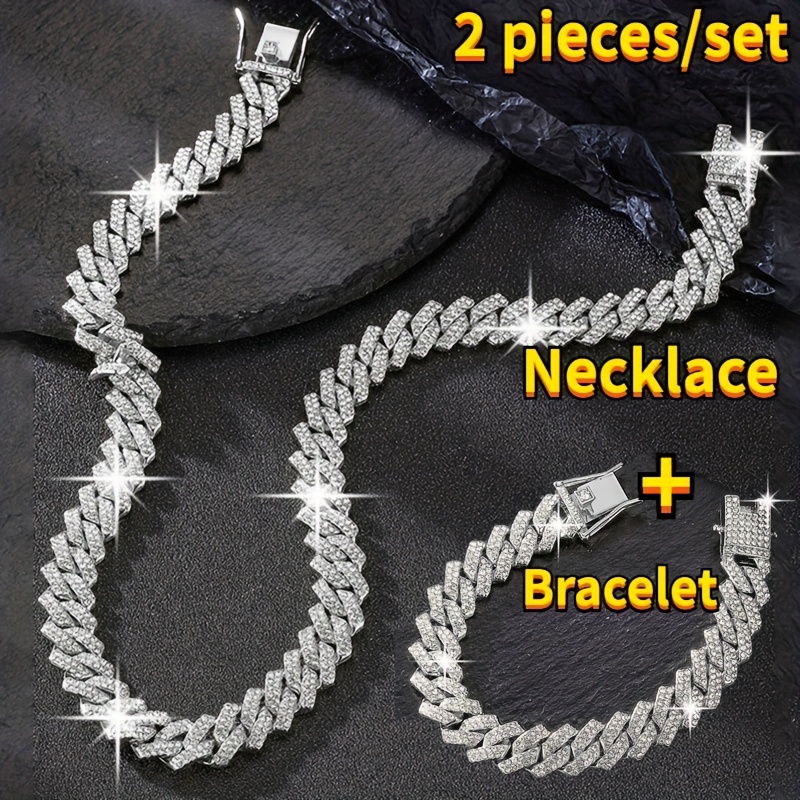 Punk Cuban Link Chain – 2-Piece Shiny Necklace & Bracelet Set