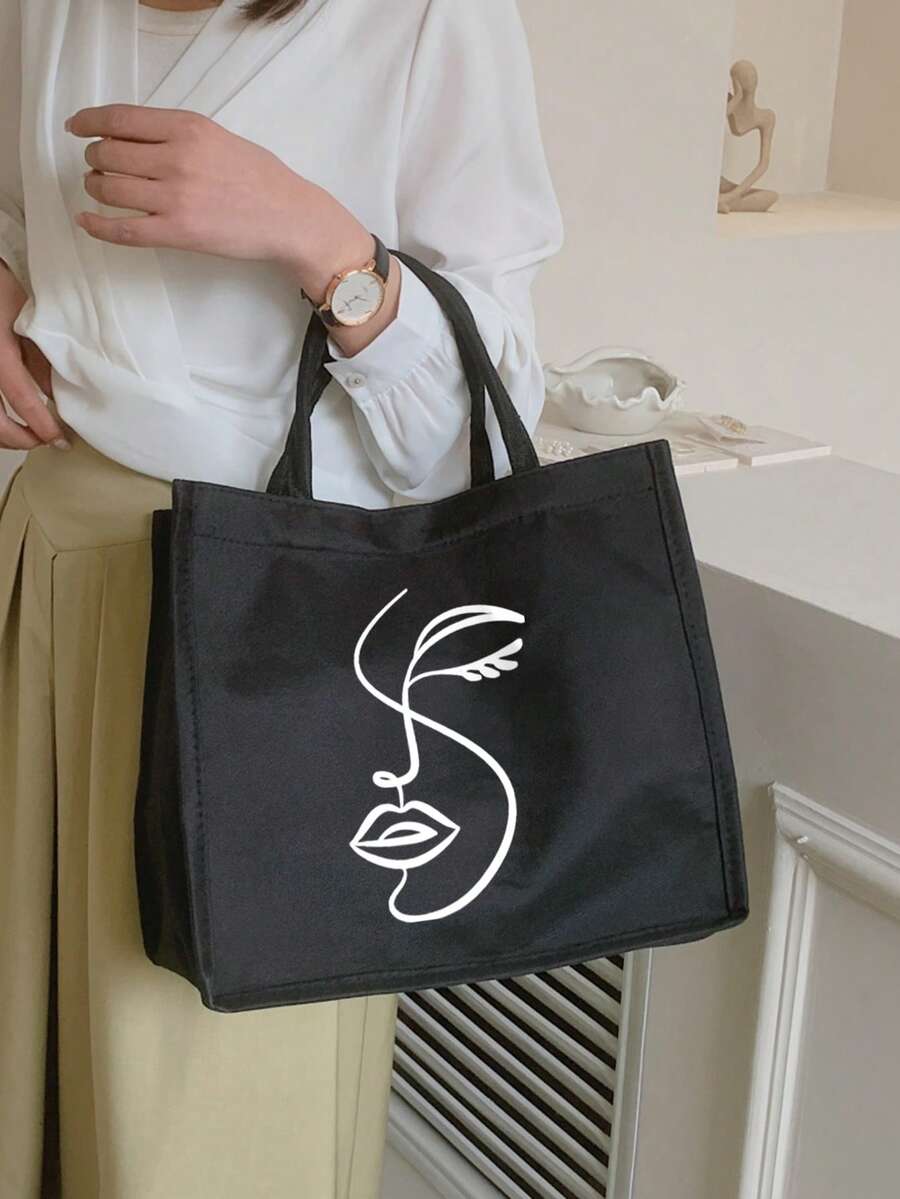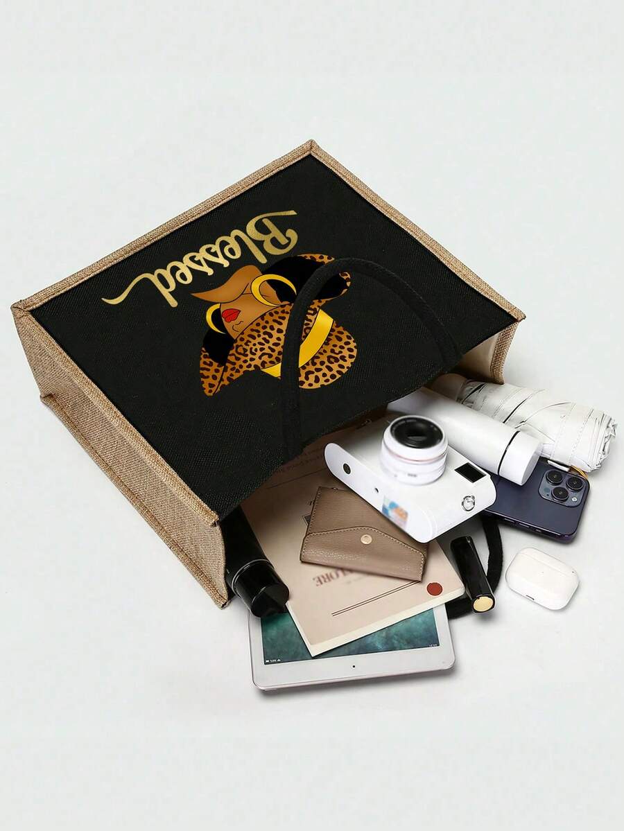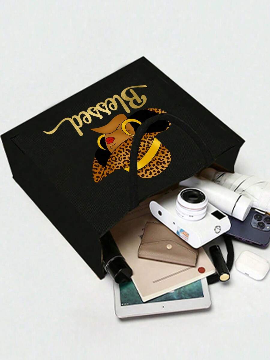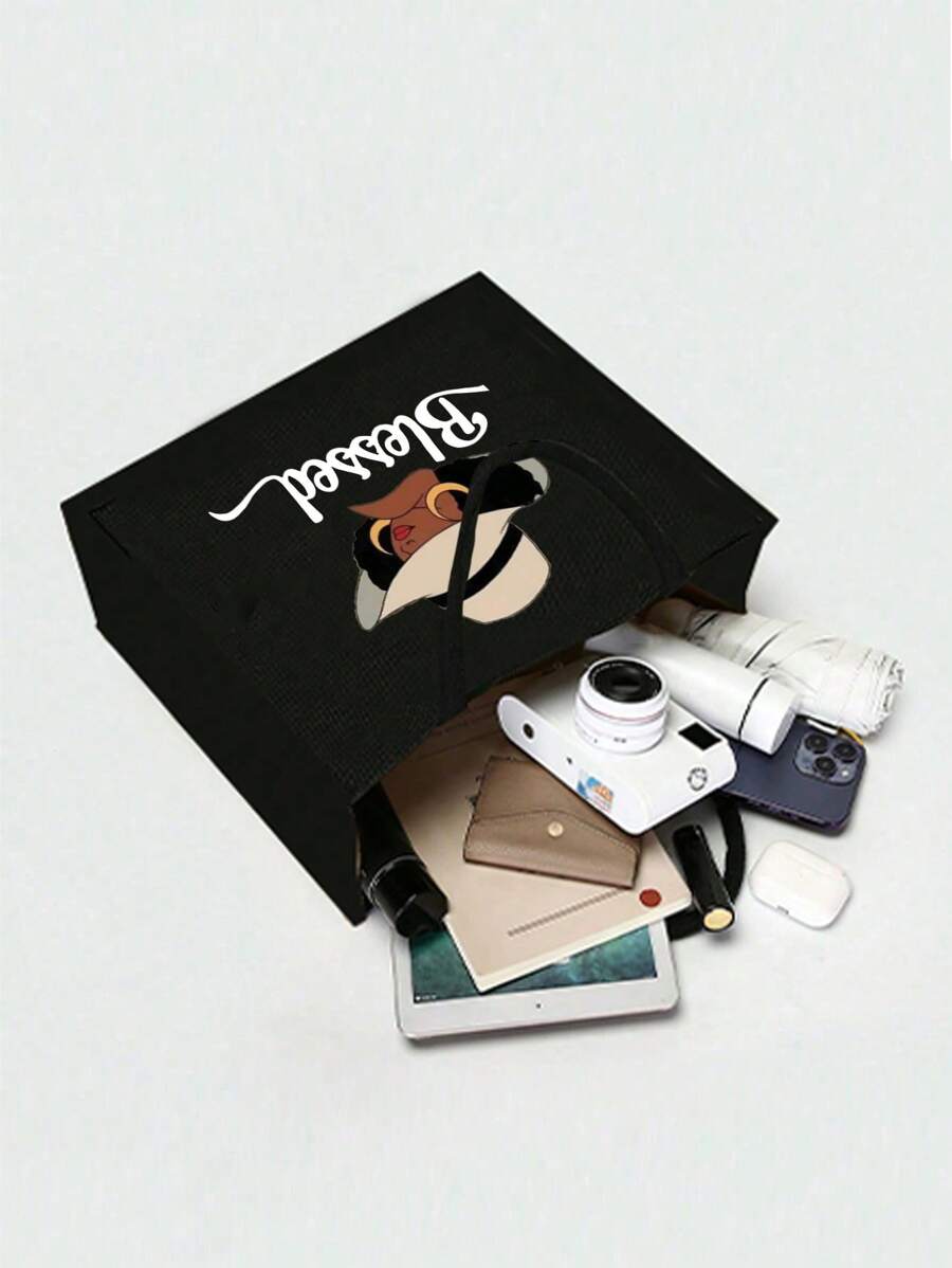 Queen Cartoon Character Printed Tote Bag Set – “Blessing” Letter Design