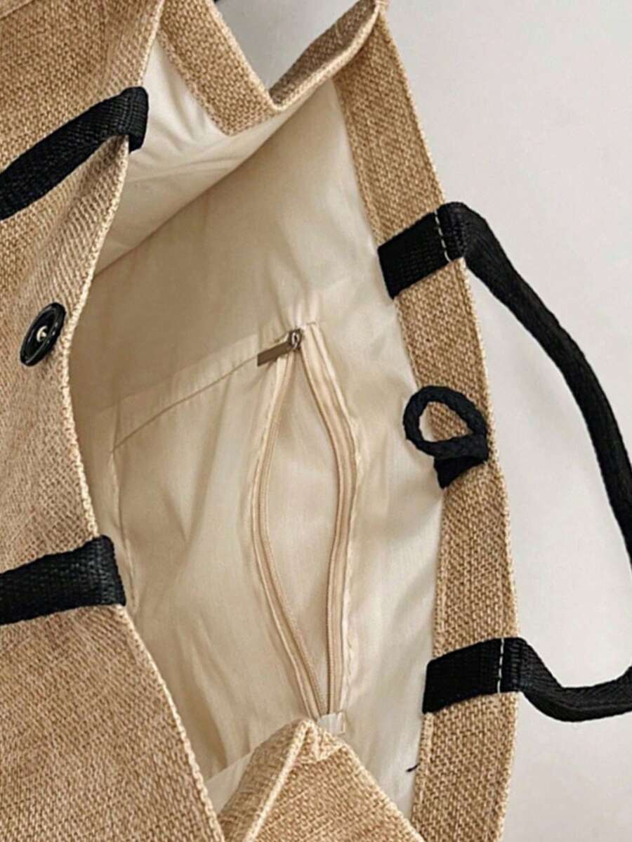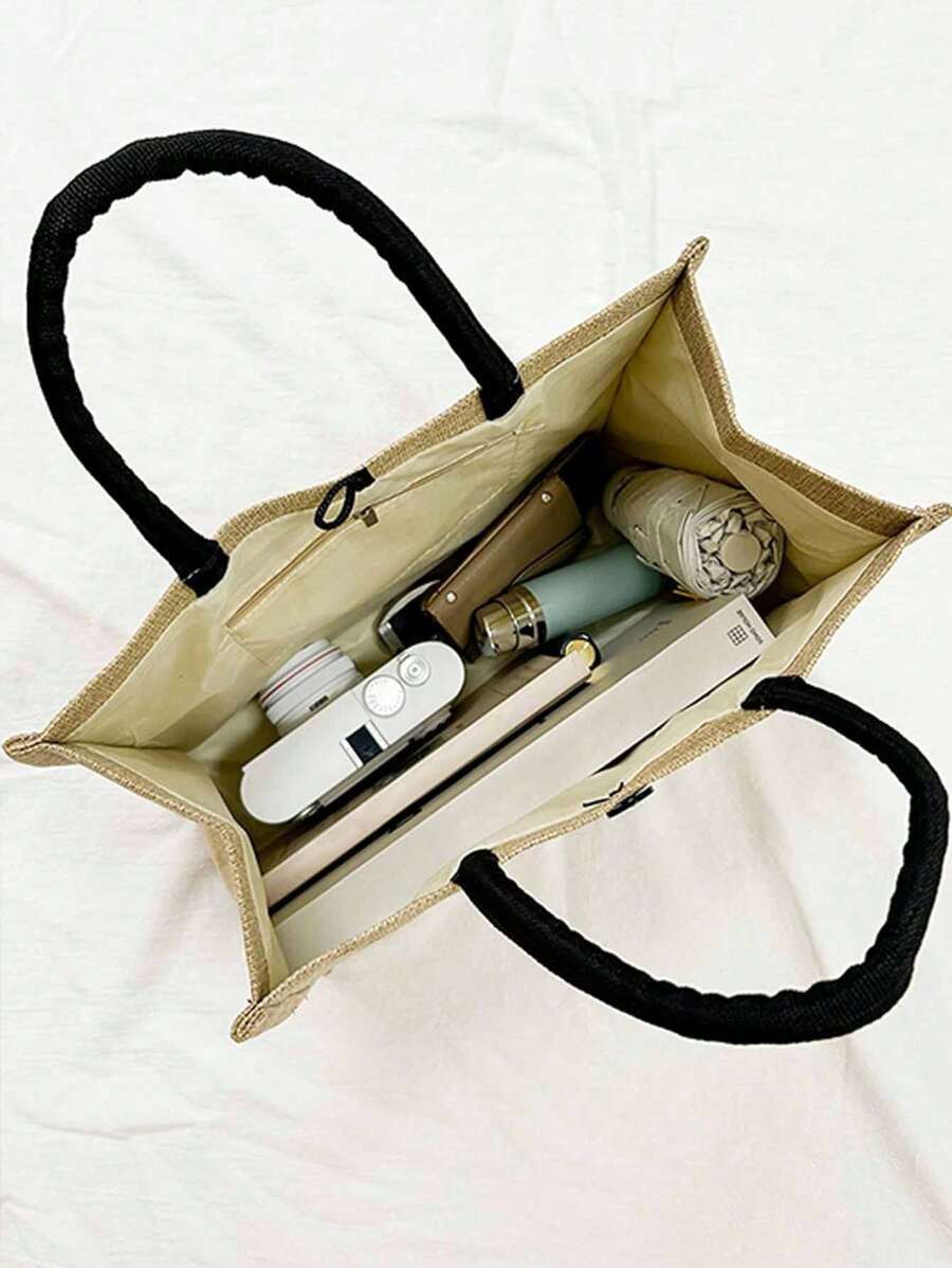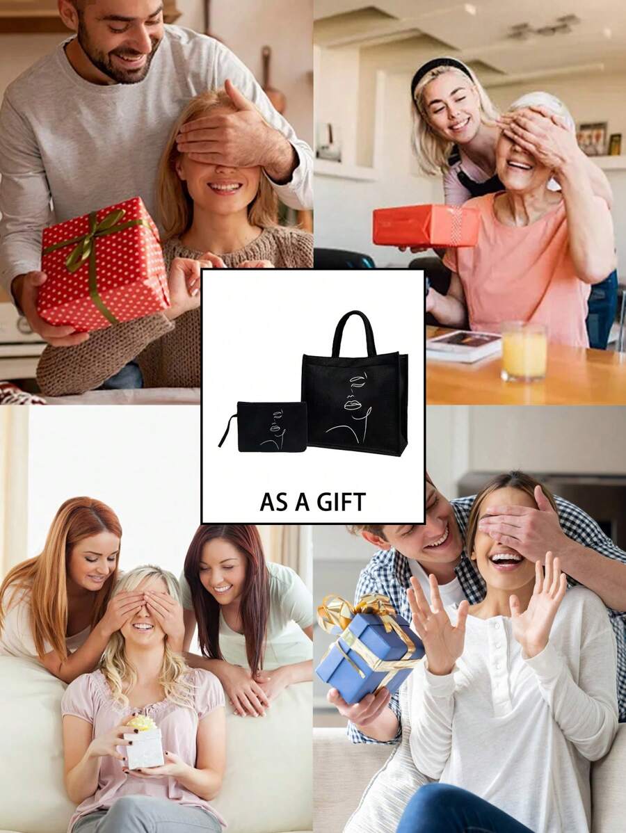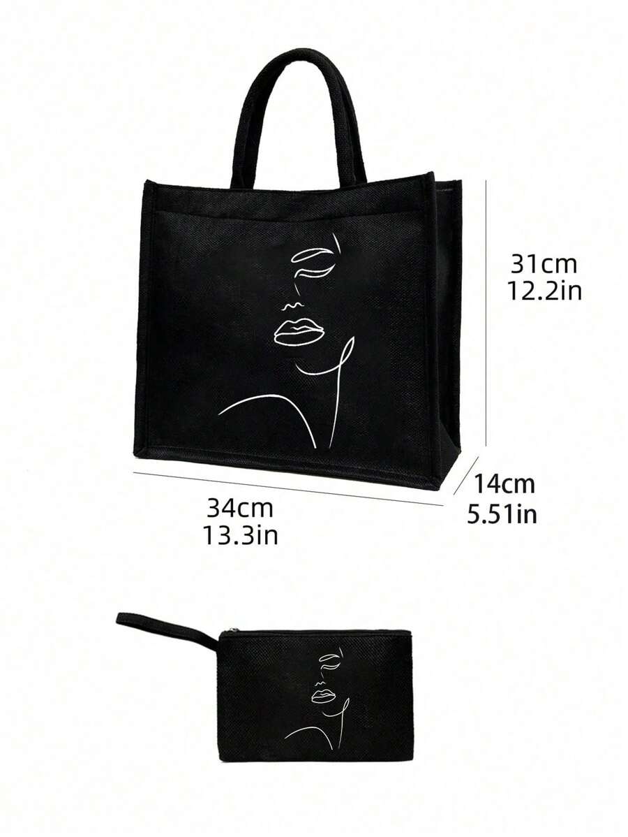 Versatile Set: Includes a large tote bag perfect for groceries, books, or daily essentials, plus a compact cosmetic bag for your makeup or small items.