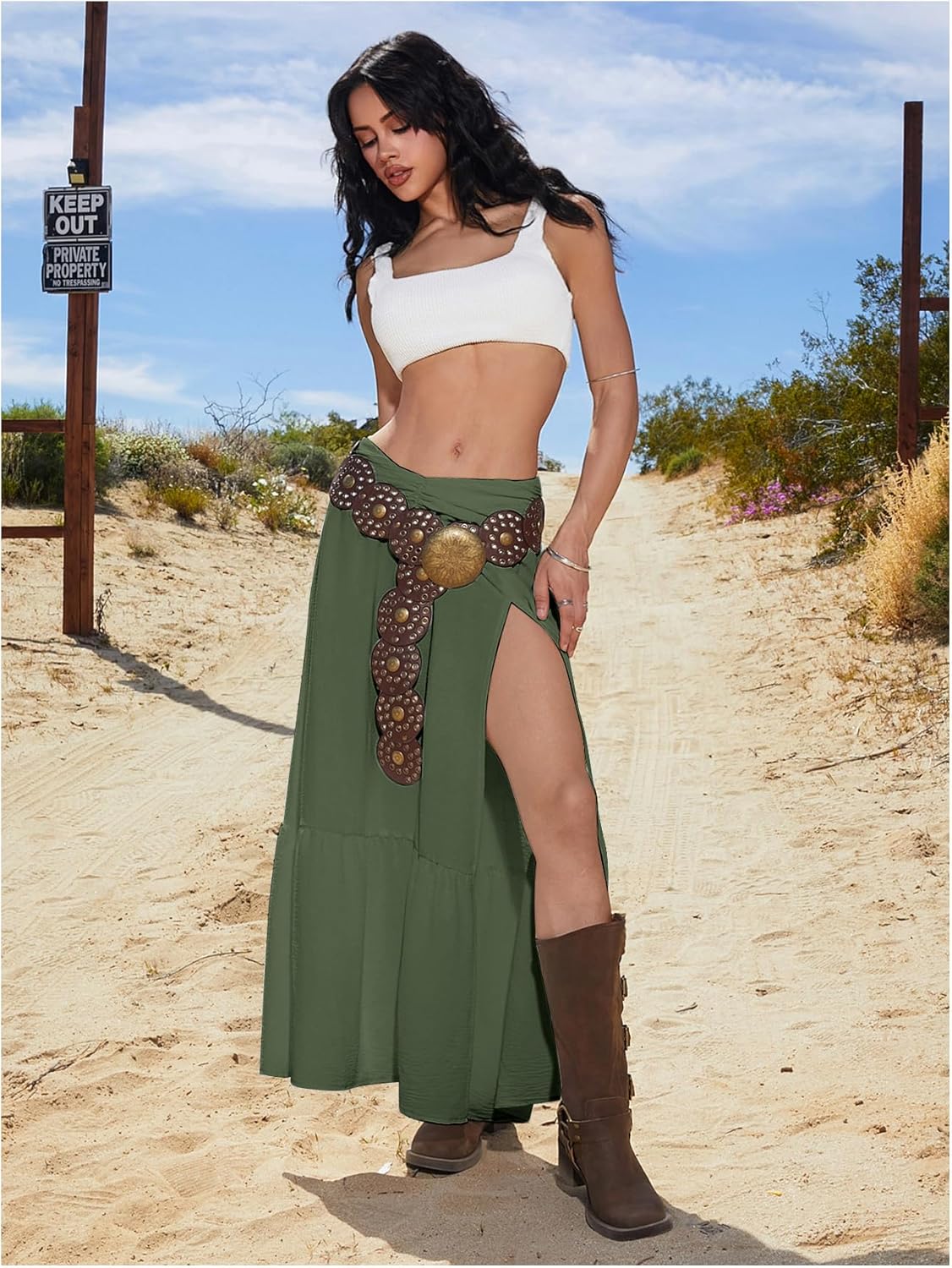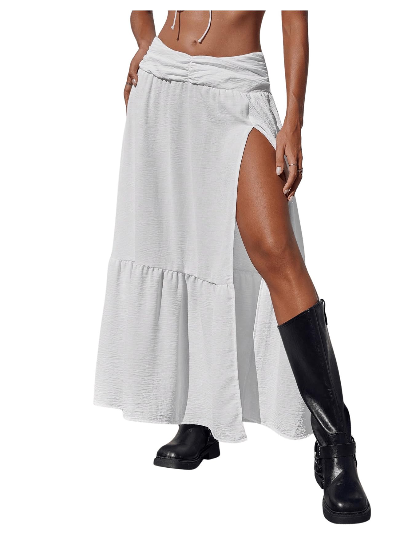 Add effortless elegance to your summer wardrobe with the SHENHE Women's Low Rise Maxi Skirt. Designed with a flattering low-rise fit, this flowy boho skirt features a daring high slit and romantic ruffle hem that moves beautifully with every step. Lightweight and breathable, it's perfect for beach days, festivals, or casual strolls under the sun. Pair it with a crop top or bikini for an easy, carefree look.