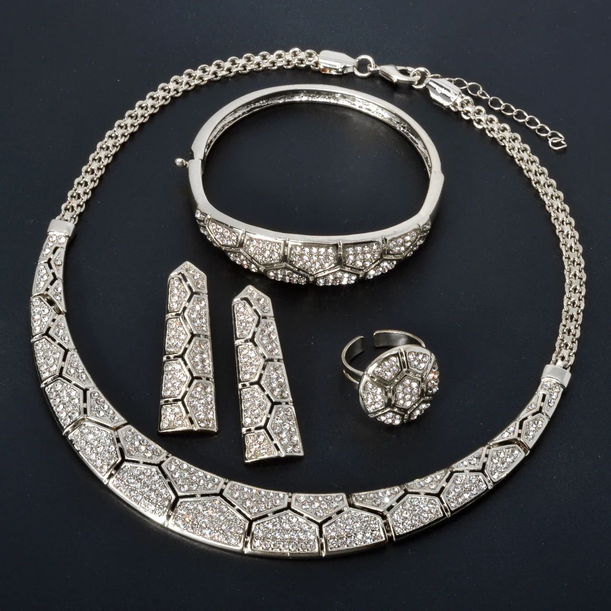 Complete bridal set: Necklace, earrings, ring, and bracelet