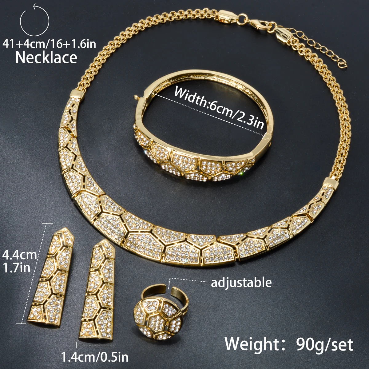 Sunny Jewelry Sets Latest Dubai Gold Color Adjustable Chain Geometry Jewelry Sets Luxury Zircon 18K Gold Plated Women Necklaces Earrings Ring Bracelet Jewelry Sets Wedding Party Accessories