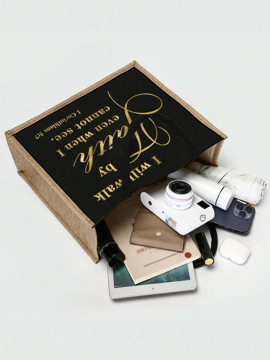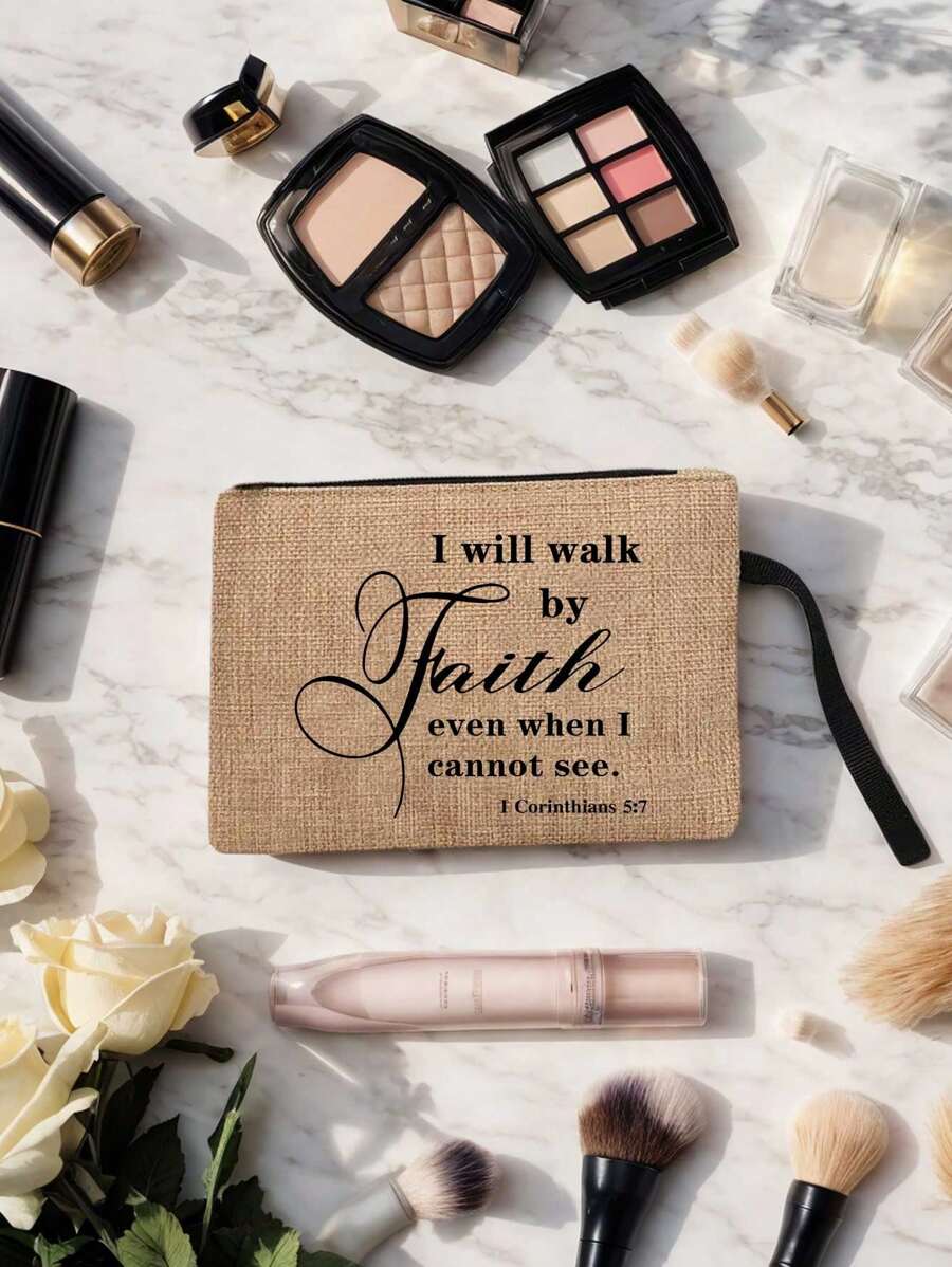 Carry inspiration wherever you go with this beautifully designed Tote Bag Set, featuring the uplifting message “I Will Walk By Faith Even When I Cannot See” in elegant golden lettering.
