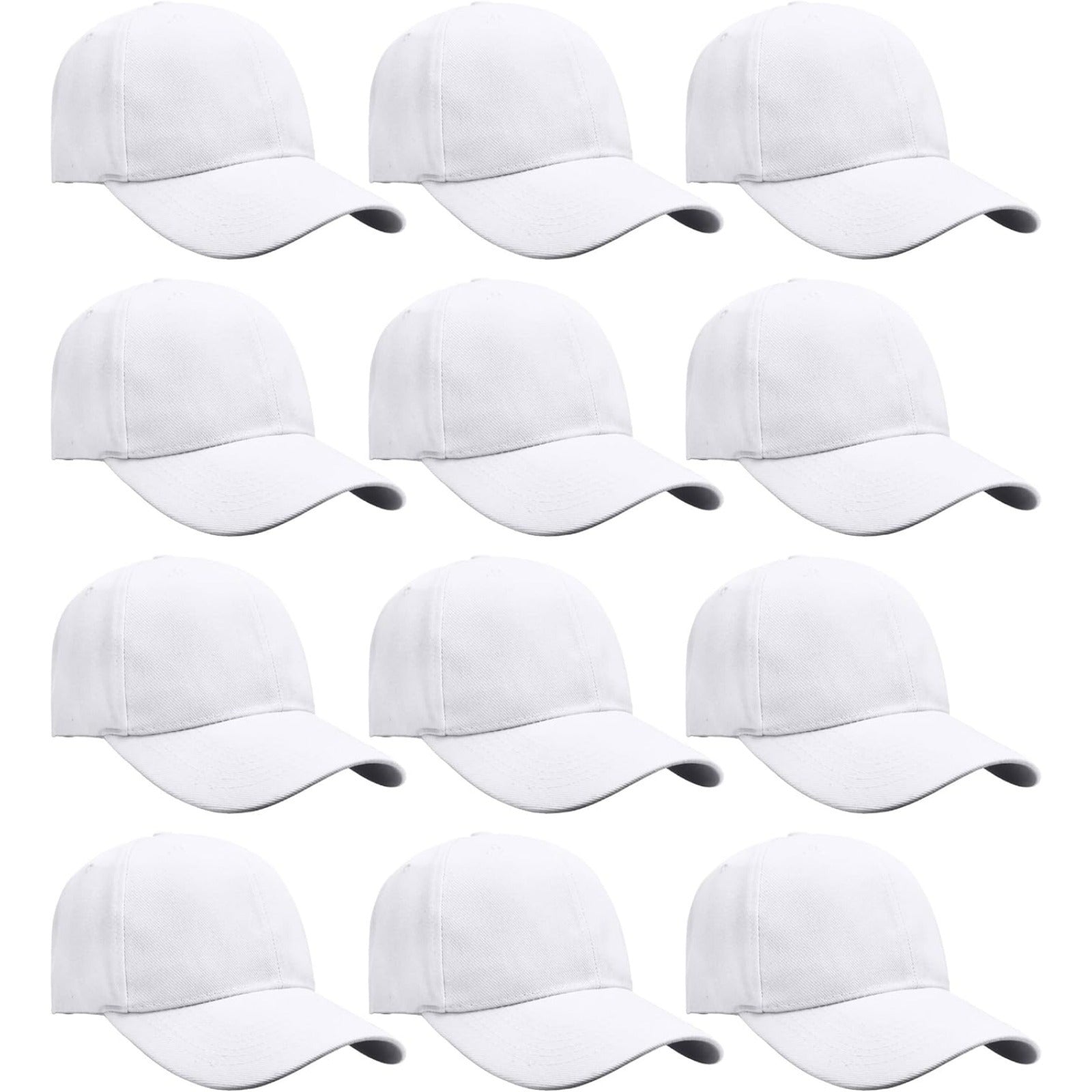 Stock up with this 12-pack of classic baseball caps, perfect for customization, team uniforms, giveaways, or everyday wear. Each hat features a clean, solid-color design with no logos or embroidery—ready for printing, embroidery, or heat transfer.