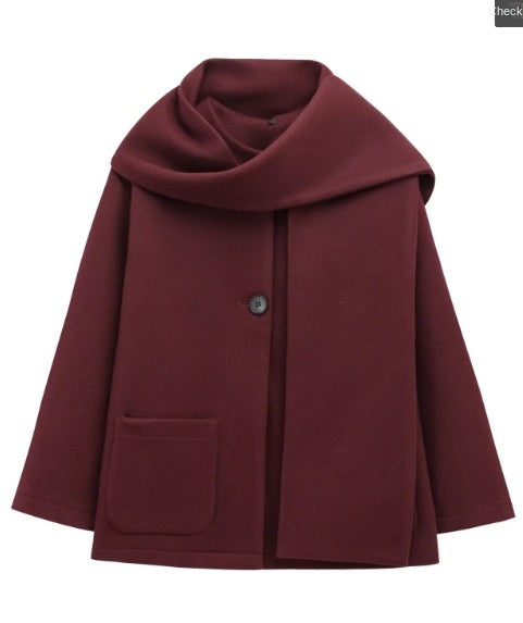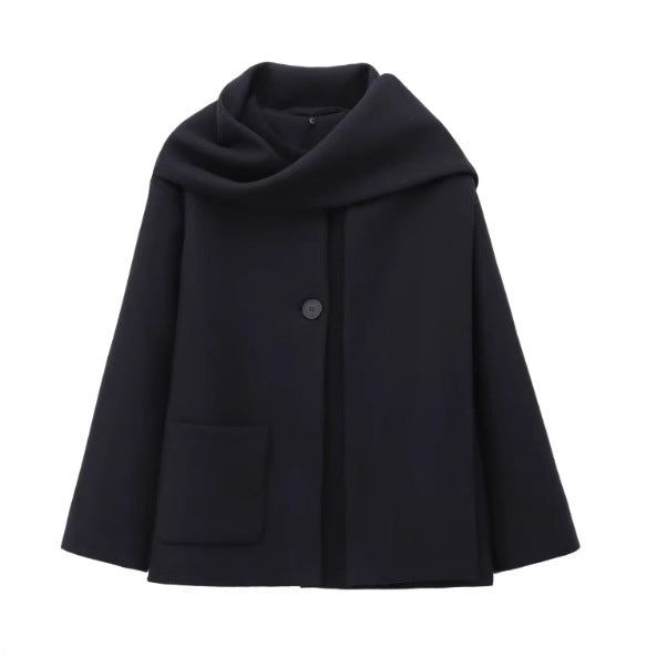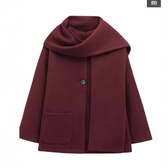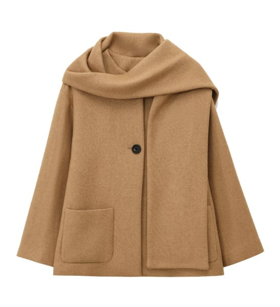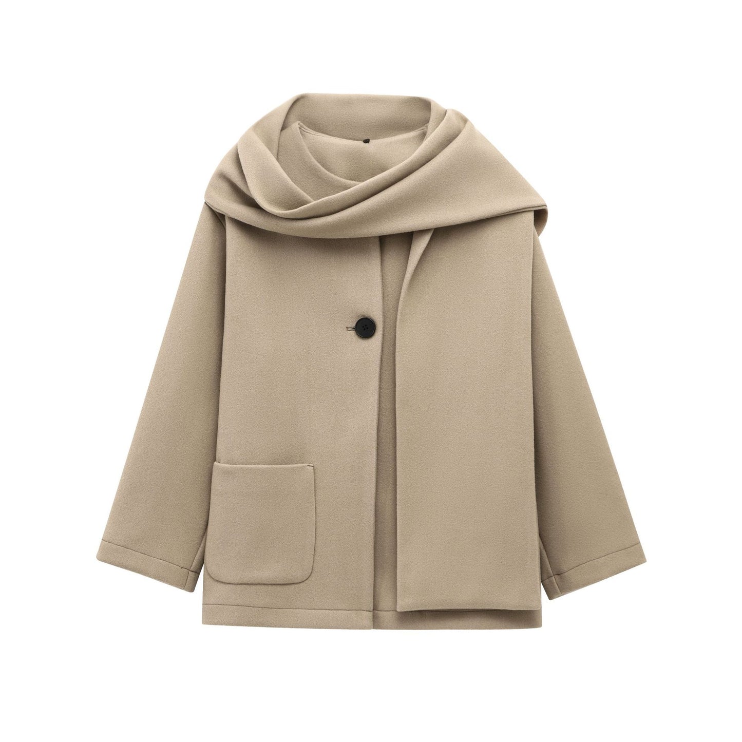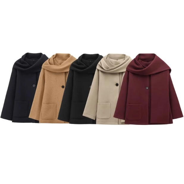 Women's Fashion Casual Blended Fabric Coat with Scarf